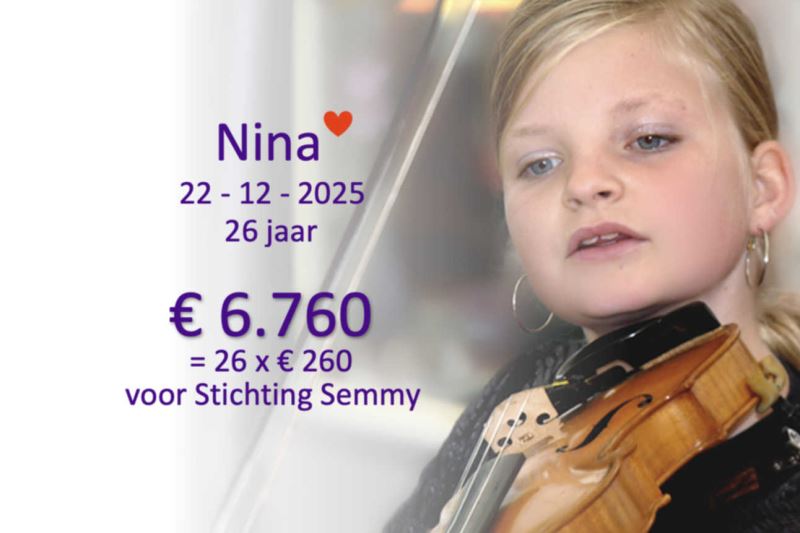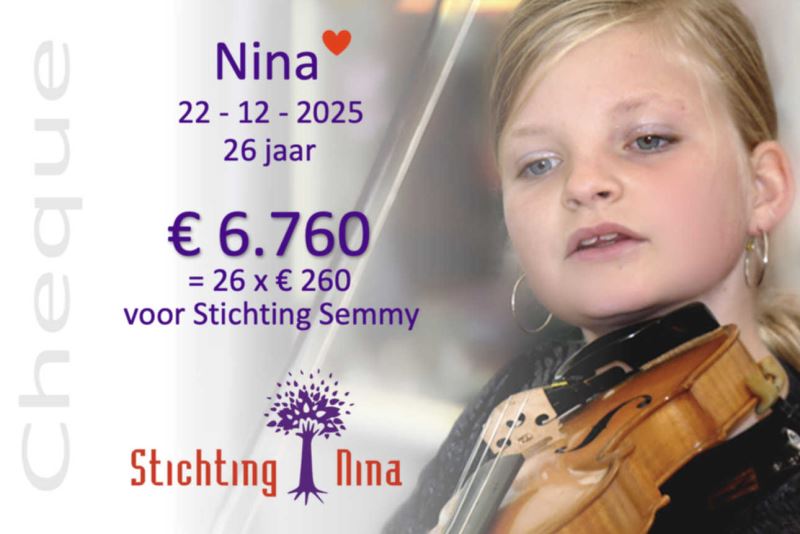 Een mooi moment om 26 x 260 euro over te maken naar Stichting Semmy.